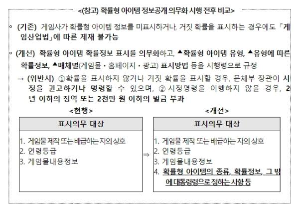게임이용자들에게 친숙한 확률형 아이템 유형과 표시사항 등 빠짐없이 규정