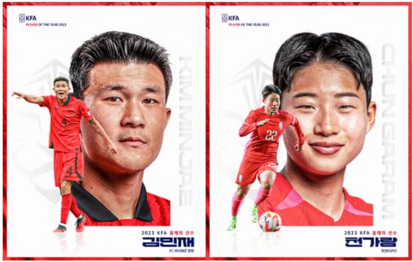 김민재(28, 바이에른 뮌헨)와 천가람(22, 화천KSPO)이 2023년 ‘대한축구협회 올해의 선수’로 선정됐다.