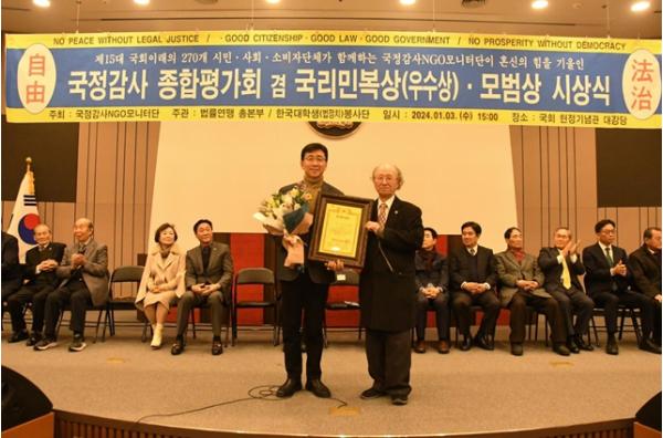 법률소비자연맹 주관 ‘국정감사 NGO모니터단’은 시민단체들과 전국 65개 대학의 청년 대학생, 각 분야 전문가들이 국정감사의 전 과정을 종합 모니터하고, 정밀한 평가를 통해 ‘21대 국회 4차년도(2023) 국정감사 국리민복상(우수국감의원)’을 최종 선정한다.