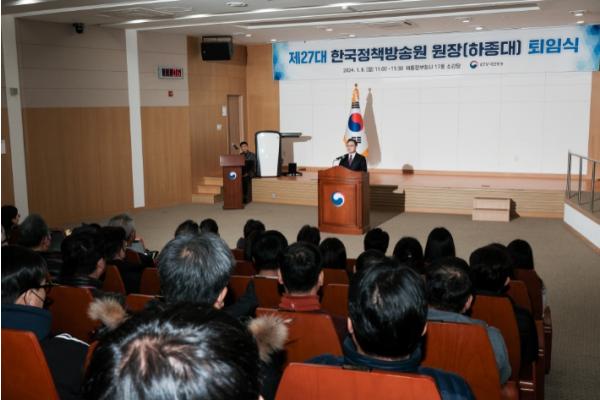 하 전 원장은 퇴임사에서 “한계에 타협하지 않았고 함께 돌파구를 찾고자 모든 직원이 노력했다”며 “앞으로 국민 눈높이에서 국가의 미래를 투영하는 방송이 되기를 부탁드린다”고 말했다.