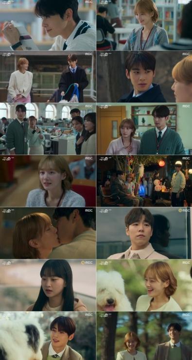 10일(어제) 밤 9시 방송된 MBC 수요드라마 ‘오늘도 사랑스럽개’(연출 김대웅/ 극본 백인아/ 제작 그룹에이트, 판타지오/ 제작 투자 에이앤이 코리아) 최종회에서는 산신의 저주를 이겨내고 선물 같은 시간을 보내는 진서원(차은우 분)과 한해나(박규영 분)의 모습이 그려졌다.