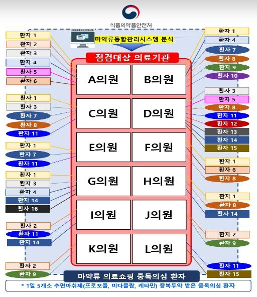 식약처는 여러 분야 전문가로 구성된 ‘마약류오남용심의위원회’의 자문 의견을 거쳐 의료용 마약류 쇼핑이 의심되는 환자 16명과 이들 환자에게 프로로폴 등 마약류 의약품을 투여한 의료기관 9개소를 경찰청에 수사 의뢰했다.