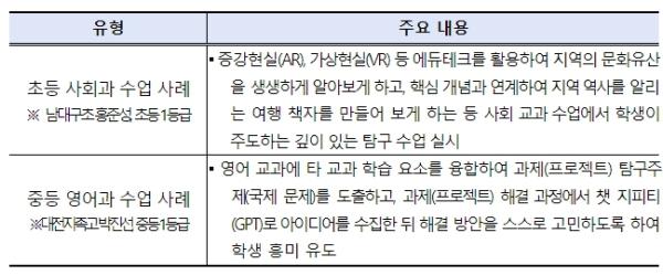 교육부는 인공지능·에듀테크 등 미래 교육환경에 적합한 교수학습 모델을 발굴하고 학생의 미래역량을 키워줄 수 있는 교실 수업혁신을 추진해 왔다. 특히, 디지털 교육 대전환의 주인공인 선생님들의 자발적인 수업혁신을 이끌어내기 위해 수업혁신사례연구대회를 활성화하고자 노력해 왔다.