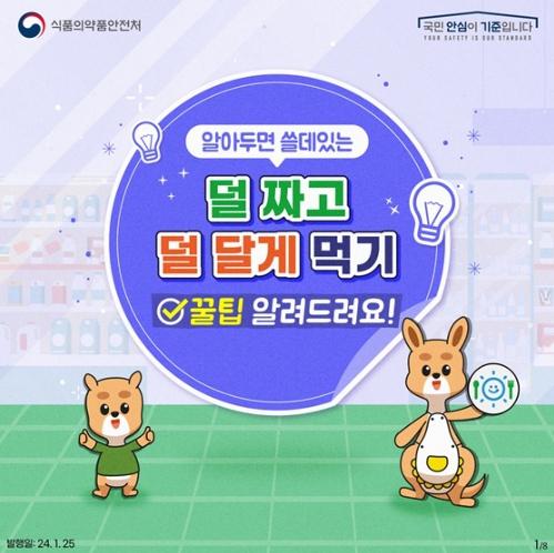 식약처에서는 국민의 건강한 식생활에 도움을 주기 위해 '나트륨·당류저감 표시기준'을 마련하고 나트륨· 당류 줄인 제품을 개발하도록 기술 지원하고 있어요.