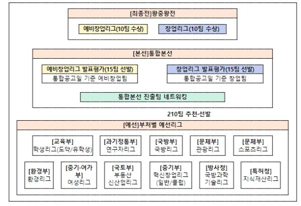 ‘도전! K-스타트업 2024’은 1월 29일 통합공고를 시작으로 9월까지 부처별 예선리그가 진행되며, 이후 예선리그를 통과한 (예비)창업자들이 경쟁하는 통합본선(210개팀)이 이어져 왕중왕전에 진출할 30개팀을 가리게 된다.