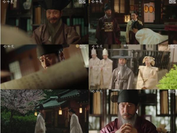 과거 선왕 죽음 당시에도 입에서 똑같은 자줏빛 반점이 발견되고 달큰한 향이 난 사실이 그려지며 두 사람의 죽음에 얽혀 있는 비밀이 안방극장에 충격을 안겼다. 해당 장면에서 김상중은 날카로운 눈빛과 근엄한 자태로 압도적인 카리스마를 발산하며 서사의 한 축을 이끌었다.