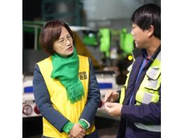 강은미 의원은 직접 현장에서 노동환경의 개선점과 안전사고 우려 등의 목소리를 들었다. 특히, 예산 집행 시기의 문제로 임시직 노동자 채용이 늦어지면서 발생한 업무 공백 기간에 다른 노동자가 과중한 업무 부담 등이 발생하는 문제점을 설명 들었다. 또한, 좁은 골목에는 대형 차량이 진입하지 못해서 일일이 손으로 옮겨야 하는 고충 등을 들었다.