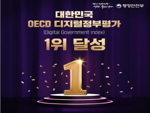 [중앙방송, 김영진 기자] 행정안전부는 경제협력개발기구(OECD)에서 실시하는 2023년 디지털정부 평가(2023 OECD Digital Government Index)에서 대한민국이 2회 연속 종합 1위를 차지했다고 밝혔다.