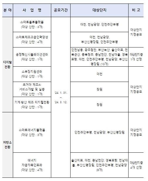 산업부 관계자는 “이번 공모에 기업, 연구기관, 지자체 등의 많은 관심을 부탁드린다”며 “입주기업의 글로벌 경쟁력을 강화하고 첨단 신산업 기업과 청년들이 찾는 산업단지로 바꿔나가기 위해 산단의 디지털화, 저탄소화를 지속적으로 지원해 나갈 계획” 이라고 밝혔다.