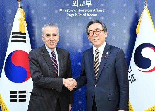 [중앙방송, 김정아기자] 조태열 외교장관은 1월 30일'필립 골드버그(Philip S. Goldberg)'주한 미국대사를 접견하고, 한미동맹과 한미일 협력, 북핵?북한 문제, 지역 및 글로벌 차원의 공조 방안에 대해 의견을 교환했다.