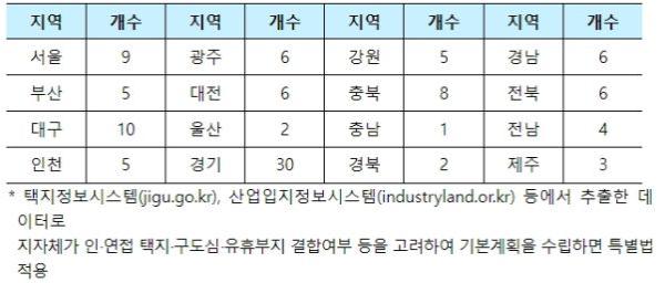 노후계획도시를 택지개발사업, 공공주택사업, 산업단지 배후 주거단지 조성사업 등으로 조성됐고, 인?연접 택지?구도심?유휴부지를 포함하여 100만㎡ 이상인 지역으로 정의를 구체화하면서 안산 반월, 창원 국가산단 배후도시 등이 추가되어 108개 내외의 지역이 특별법 적용을 받을 수 있게 됐다.