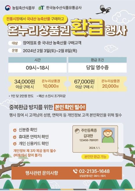 농림축산식품부, 전통시장에서 농축수산물 구입하시고 온누리상품권 받아가세요