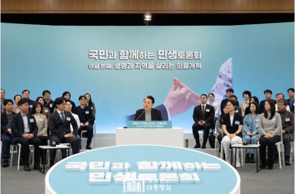 실습 참관에 이어 대통령은 여덟 번째 민생토론회를 주재했다. 대통령은 모두 발언에서 우리나라는 세계 최고 수준의 의료진 역량과 건강보험 시스템을 갖추고 있음에도 의료시스템의 붕괴를 걱정해야 하는 현실이 안타깝다며, 작년 10월 ‘담대한 의료개혁’을 국민께 약속드린 이후, 그 실천방안으로서 오늘 발표하는 ‘4대 정책 패키지’를 꼼꼼히 준비해 왔다고 설명했다.