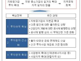 또한, 지방공기업 투자 활성화 실무 추진단을 구성하여 노하우 등이 부족한 지방공기업을 대상으로 신규사업 기획을 지원하고, 해결하기 어려운 장애요인을 해소해주어 투자가 차질없이 이루어지도록 할 계획이다.