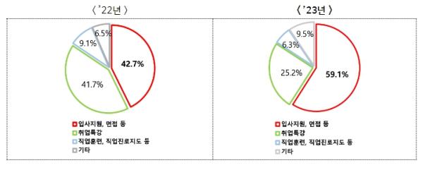 재취업률 상승에는 무엇보다 실업급여 수급자들의 적극적인 재취업 활동 증가가 주요했다. ’23년 수급자의 수급기간 중 재취업 활동 비중을 살펴보면 입사지원·면접·채용행사 등 직접 일자리를 찾기 위한 활동이 ’22년 42.7%에서 59.1%로 크게 증가했다.