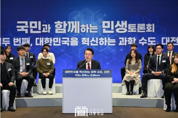 [중앙방송, 이선호기자] 윤석열 대통령은 2월 16일 오전 대전에서 ‘대한민국을 혁신하는 과학 수도 대전’을 주제로 열두 번째 ?국민과 함께하는 민생토론회?를 개최하여, 국가 과학기술 경쟁력을 높이고 대전을 과학 수도에 걸맞게 혁신클러스터의 글로벌 허브로 업그레이드하기 위한 방안들을 논의했다.