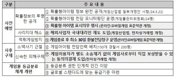 이는 지난 1월 30일 대통령 주재로 열린 ‘국민과 함께하는 민생토론회 일곱 번째, 상생의 디지털, 국민권익 보호’에서 발표한 게임이용자 권익 보호 대책의 일환으로서 신속하게 추진한 결과이다.