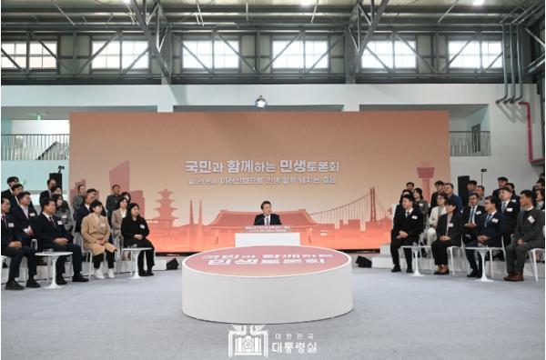 [중앙방송, 이선호기자] 윤석열 대통령은 2월 26일 오후 충남 서산비행장에서 ‘미래산업으로 민생 활력 넘치는 충남’을 주제로 열다섯 번째 ?국민과 함께하는 민생토론회?를 개최하여 충남이 미래산업으로 새롭게 도약하기 위한 방안들을 논의했다.