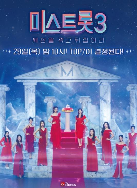 그런 가운데 공개된 포스터는 TOP10의 강렬한 아우라가 시선을 강탈한다. 대한민국 가요계 새 역사를 쓴 트로트 신들이 태어난 ‘미스&미스터트롯’ 시리즈의 위엄을 과시하는 신비로운 신전, 그 앞에 서있는 예비 트로트 여제들의 위용이 흥미롭다.