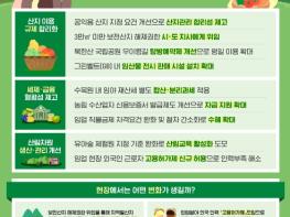 아울러, ?산지관련법령 개정을 통해 소규모 면적 보전산지 해제에 대한 시ㆍ도지사 위임규정을 마련할 계획이며, 지자체 여건에 따라 신속한 의사결정이 가능해질 것으로 예상된다. 이에 따라 주민 편의시설인 지자체 청소년 및 노인요양시설 등 지역의 역점 추진시설의 설치가 탄력을 받을 것으로 기대된다.