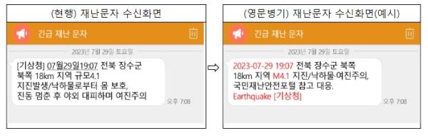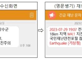 [중앙방송, 김영진 기자] 행정안전부와 기상청은 경보음을 동반하는 위급?긴급 재난문자 발송 시, 재난유형과 지진규모 등 재난발생 핵심정보에 대해 영문 표기를 병행하여 한국어에 능숙하지 않은 외국인들도 재난상황을 쉽게 이해할 수 있도록 표준문안 및 시스템을 개선한다.