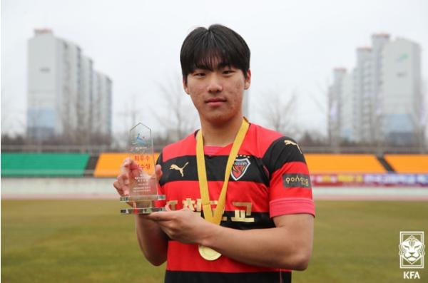 [중앙방송, 김지효기자] 백운기 최우수선수상을 차지한 포항제철고(포항스틸러스U18) 백승원은 지난해 AFC U-17 아시안컵을 앞두고 대표팀에서 탈락했던 걸 변곡점으로 삼았다.