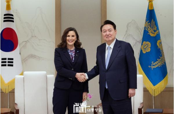 [중앙방송, 이선호기자] 윤석열 대통령은 3월 7일 오후 방한 중인 '그레첸 위트머(Gretchen Whitmer)' 미국 미시간 주지사를 접견하고, 우리나라와 미시간州 간 협력 방안, 우리 진출 기업과 한인 사회에 대한 지원 등에 관해 의견을 교환했다.
