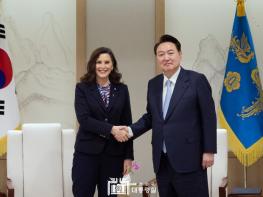 대통령은 한미동맹 70주년을 맞이한 지난해 국빈 방미를 계기로 확장억제, 경제 안보, 첨단기술, 문화·인적교류를 비롯해 모든 분야에서 한미 간 협력이 강화되고 있다고 강조했다. 대통령은 또한 미시간州에 투자하는 모든 국가 중 한국의 투자 규모가 2위에 달하는 등 양측 간 경제협력이 활발하게 이루어지고 있다고 평가했다. 대통령은 특히 우수한 기술력을 보유한 우리 기업들이 자동차 산업과 중공업이 발달한 미시간州에 투자해 지역 내 일자리를 창출하고 핵심 산업 공급망 다변화에 기여하고 있는 만큼 우리 기업에 대한 주 정부 차원의 관심과 지원을 당부했다.