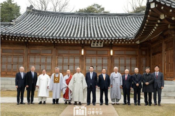 [중앙방송, 이선호기자] 윤석열 대통령은 3월 12일 오후 취임 후 세 번째로 '종교지도자 오찬 간담회'를 가졌다. 청와대 상춘재에서 열린 오찬 간담회에는 기독교, 불교, 천주교, 원불교, 유교, 천도교, 한국민족종교협의회 등 10명의 종교계 지도자들이 초청됐다.
