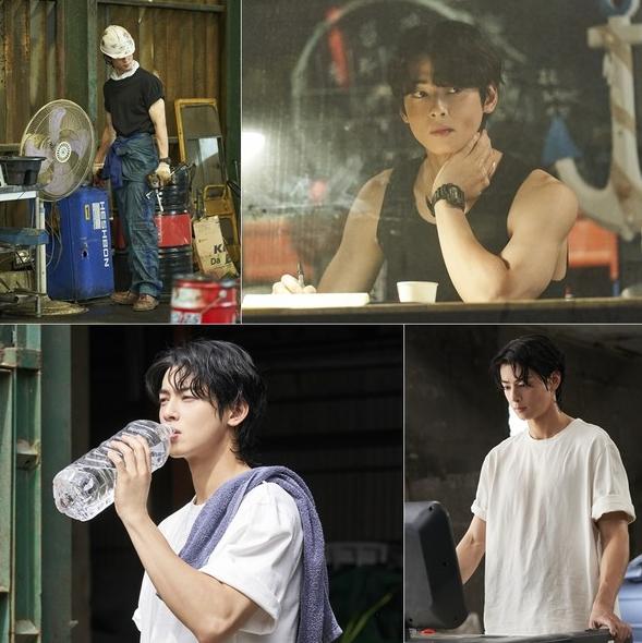 이 가운데 ‘원더풀 월드’ 측이 벌크업한 차은우의 모습이 담긴 스틸을 공개해 이목을 끈다. 공개된 스틸 속 차은우는 기름때 묻은 수더분한 얼굴과 검정색 나시티 사이로 근육질의 우람한 팔뚝을 드러내고 있어 치명적인 매력을 더한다.