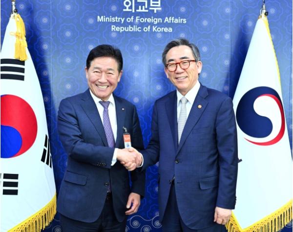 [중앙방송, 김영진 기자] 조태열 장관은 3월 14일 박종범 세계한인무역협회(World-OKTA) 회장을 만나 재외동포 기업인의 활동과 우리 기업의 해외진출 확대 관련 애로사항을 청취하고, 외교부-세계한인무역협회 간 협력 방안에 대해 논의했다.