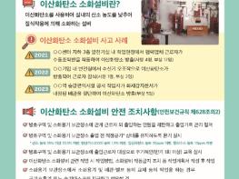 이번에 배포되는 안내문과 매뉴얼에는 이산화탄소 소화설비에 대한 기본적인 사항뿐만 아니라 △이산화탄소가 방출되는 방호구역에는 관계 근로자 외 출입제한, △방호구역 출입근로자 대상 교육 실시, △산소·이산화탄소 감지 및 경보장치 설치 등 안전 조치사항에 관한 내용을 담고 있다. 또한, 자체점검표를 제공하여 사업주가 스스로 소화설비를 점검하고 안전관리를 철저히 할 수 있도록 했다.