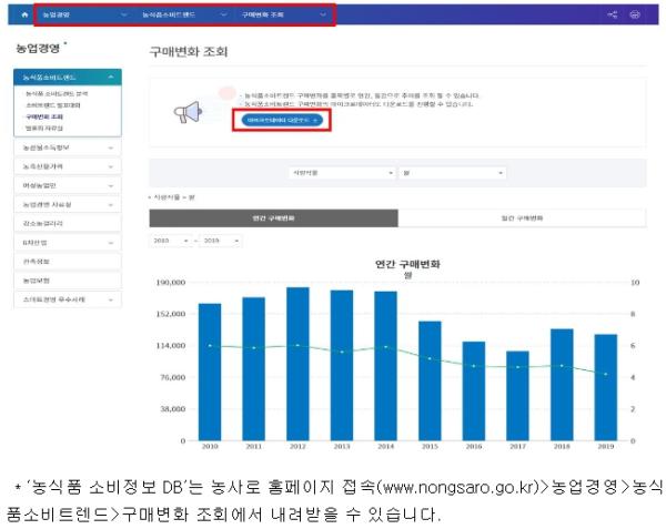 자세한 내용은 농사로 누리집 접속해 ‘농업경영-농식품소비트렌드-구매변화 조회’에서 확인할 수 있다.