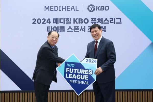 KBO(총재 허구연)와 엘앤피코스메틱(회장 권오섭)은 오늘(15일) 양 사 대표가 모여 2024 KBO 퓨처스리그 타이틀 스폰서십을 위한 협약 조인식을 체결하고, 퓨처스리그 공식 타이틀명을 ‘2024 메디힐 KBO 퓨처스리그’로 확정하여 발표했다.