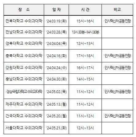 [중앙방송, 김영진 기자] 농림축산검역본부는 '미래 수의사를 찾아가는 공직설명회'를 10개 수의과대학에서 3월부터 5월까지 3개월간 순회 개최한다.