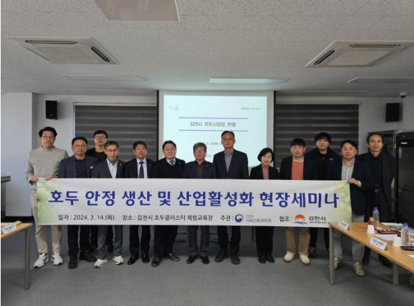 이번 세미나에서는 △김천시 시험림 현황, 주요 성과 및 향후 운영계획(김천시청 이정현 주무관) △세계 호두 재배동향 및 주요 품종(산림과학원 전 과장 김만조 박사) △국내 호두 생산동향과 재배현안(산림과학원 김철우 박사) △호두 수확후관리 및 가공(산림과학원 김용현 박사) 등 안정적인 호두 생산과 산업활성화 방안 논의를 위한 주제발표가 있었다.