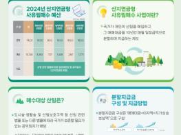 ’21년 첫 제도시행부터 현재까지 지속적으로 현장 의견을 수렴하고 시행과정에서 나타난 문제점을 개선해 매수기준 단가 폐지, 선금 지급 40%까지 확대했다. 또한 산지면적 29ha까지는 공유지분 4인까지 매수가 가능하지만 30ha 이상 산지부터는 공유지분과 관계없이 매수가 가능하게 했다.