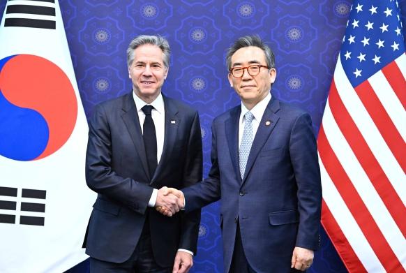 [중앙방송, 김정아기자] 조태열 외교부 장관은 3월18일 제3차 민주주의 정상회의 장관급 회의 참석을 위해 4개월 만에 다시 방한한 안토니 블링컨(Antony J. Blinken) 국무장관과 오찬을 겸한 회담을 갖고 자유·민주주의 협력, 북핵·북한 문제, 지역·글로벌 이슈 등에 대해 심도있고 전략적인 논의를 했다.