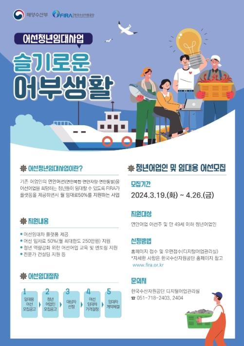 [중앙방송, 박정원기자] 해양수산부는 2024년 어선청년임대사업을 통해 지원받을 청년어업인을 3월 19일부터 4월 26일까지 모집한다.