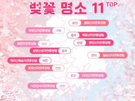 이 밖에 용화산, 운장산, 유명산, 지리산, 황정산자연휴양림 등도 벚꽃 명소이다. 전국 국립자연휴양림의 야영장이나 객실을 이용하고자 하는 고객은 ‘숲나들e’에서 예약하면 된다.