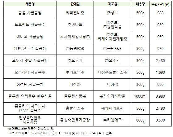 이에 대전충남소비자연맹(회장 강난숙)은 소비자에게 객관적인 제품 정보를 제공하기 위해 시중에 판매 중인 간편 사골육수 10개 제품을 대상으로 안전성, 품질, 표시 적합성 등을 시험?평가했다.