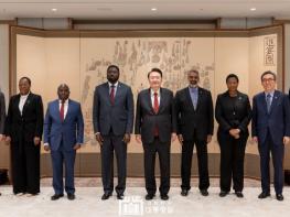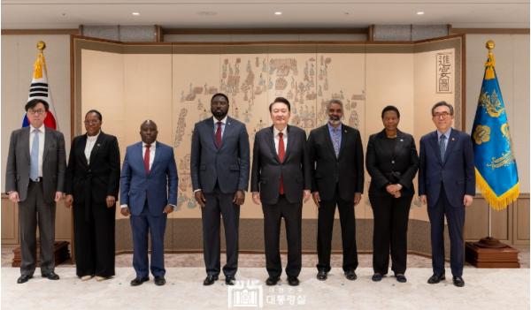 [중앙방송, 이선호기자] 윤석열 대통령은 3월 19일 오후 대통령실에서 제3차 민주주의 정상회의 1일 차 장관급회의 참석차 방한한 아프리카 5개국 장·차관급 인사들을 접견했다.