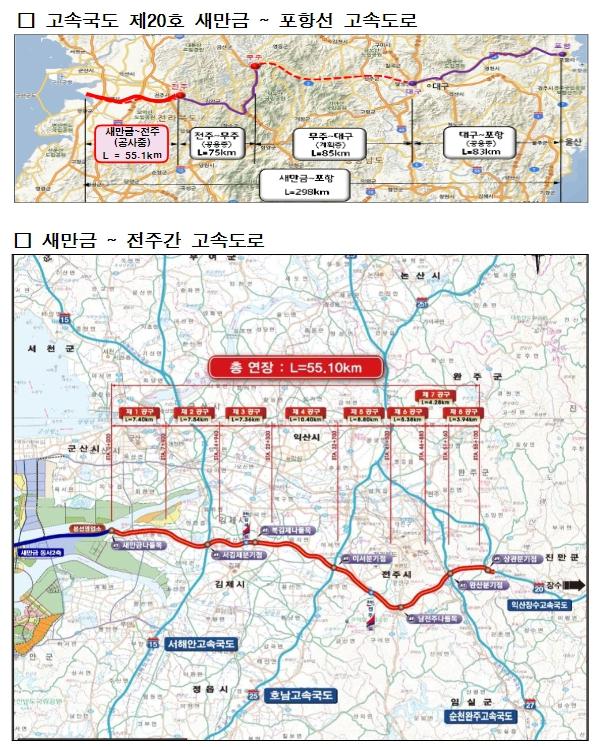 새만금-전주간 고속도로는 전북지역의 핵심 동서축 고속도로로 광활한 평야지대와 내륙 산지를 관통하는 도로로 새만금에서 전주와의 통행시간 단축, 교통량 분산으로 혼잡도 완화 등이 예상된다.