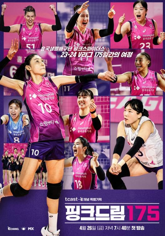 ‘배구 황제’ 김연경을 비롯한 코트 위 핑크스파이더스 선수들의 ‘피 땀 눈물’이 가득한 현장을 생생하게 전달할 티캐스트-E채널 특별기획 '핑크드림175'는 오는 4월 26일 금요일 저녁 7시 40분 E채널·채널뷰·MX에서 첫 공개된다.