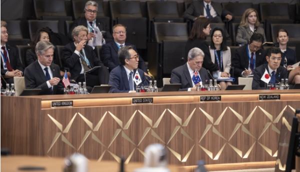 [중앙방송, 김정아기자] 조태열 장관은 4월 4일 벨기에 브뤼셀에서 개최된 북대서양조약기구(NATO, North Atlantic Treaty Organization) 외교장관회의 동맹국·파트너국 세션에 참석했다. 이번 회의에는 NATO 동맹국과 인태 파트너 4개국 대표 및 EU 외교안보 고위대표가 참석하여 우크라이나 지원 문제, 러북 군사협력 등 유럽과 인태 지역의 안보 문제에 대해 논의했다.