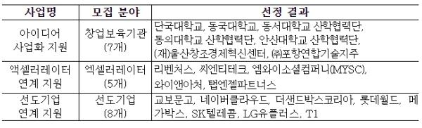 ‘아이디어 사업화 지원’ 사업에서는 7개 보육기관이 총 70개 예비창업팀을 선발해 시제품(프로토타입) 개발과 창업을 돕는 프로그램을 지원하며 5백만 원 상당의 창업 지원 이용권(바우처)을 제공한다.