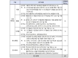 농식품부 이상만 농식품혁신정책관은 “농식품 과학기술 융합형 연구인력 양성사업을 통해 대학·학제 간 경계를 허물고 융합·협력 연구를 활성화할 뿐만 아니라 산업체, 해외 대학과의 협력 연구 등을 통한 글로벌 인재 양성과 농산업 경쟁력 제고에 기여할 수 있도록 지원해 나갈 계획”이라고 밝혔다.