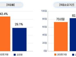 과정평가형 자격 취득자의 취업률은 43.4%로 검정형 자격 취득자의 취업률(29.1%)에 비해 14.3%p 높게 나타났다. 취업 소요 기간도 73.0일로 검정형 자격 취득자 취업 소요 기간(82.7일)보다 약 10일 짧았다.