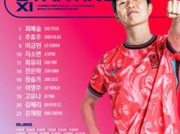 먼저 최전방에는 최유리(버밍엄시티)와 이금민(브라이튼앤드호브알비온)이 포진한다. 그 바로 아래 지소연(시애틀레인)이 공격형 미드필더를 맡는다. 중원은 추효주(인천현대제철), 장슬기(경주한수원), 전은하, 강채림(이상 수원FC)으로 구성됐다. 스리백은 이영주(마드리드CFF), 고유나(화천KSPO), 김혜리(인천현대제철)다. 골문은 최예슬(경주한수원)이 지킨다.