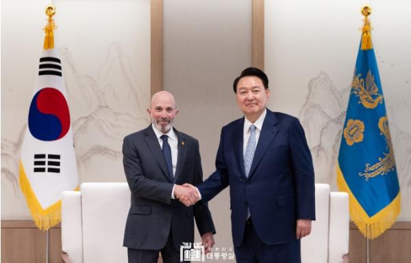 [중앙방송, 이선호기자] 윤석열 대통령은 4월 18일 오후 '에반 그린버그(Evan Greenberg)' 미한 재계회의 위원장을 접견했다.